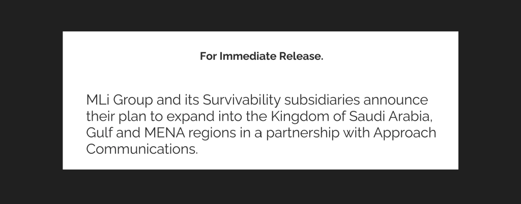 MLi Group and its Survivability subsidiaries announce their plan to expand into the Kingdom of Saudi Arabia, Gulf and MENA regions in a partnership with Approach Communications.